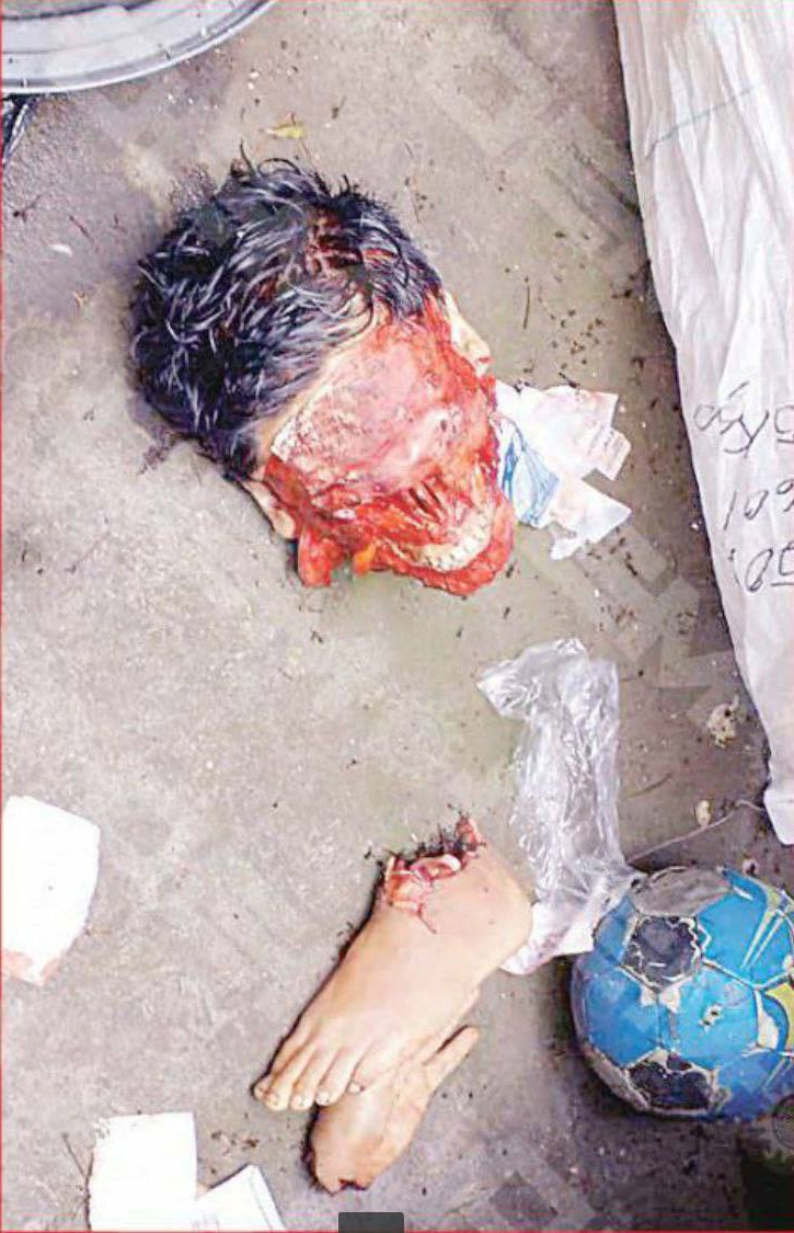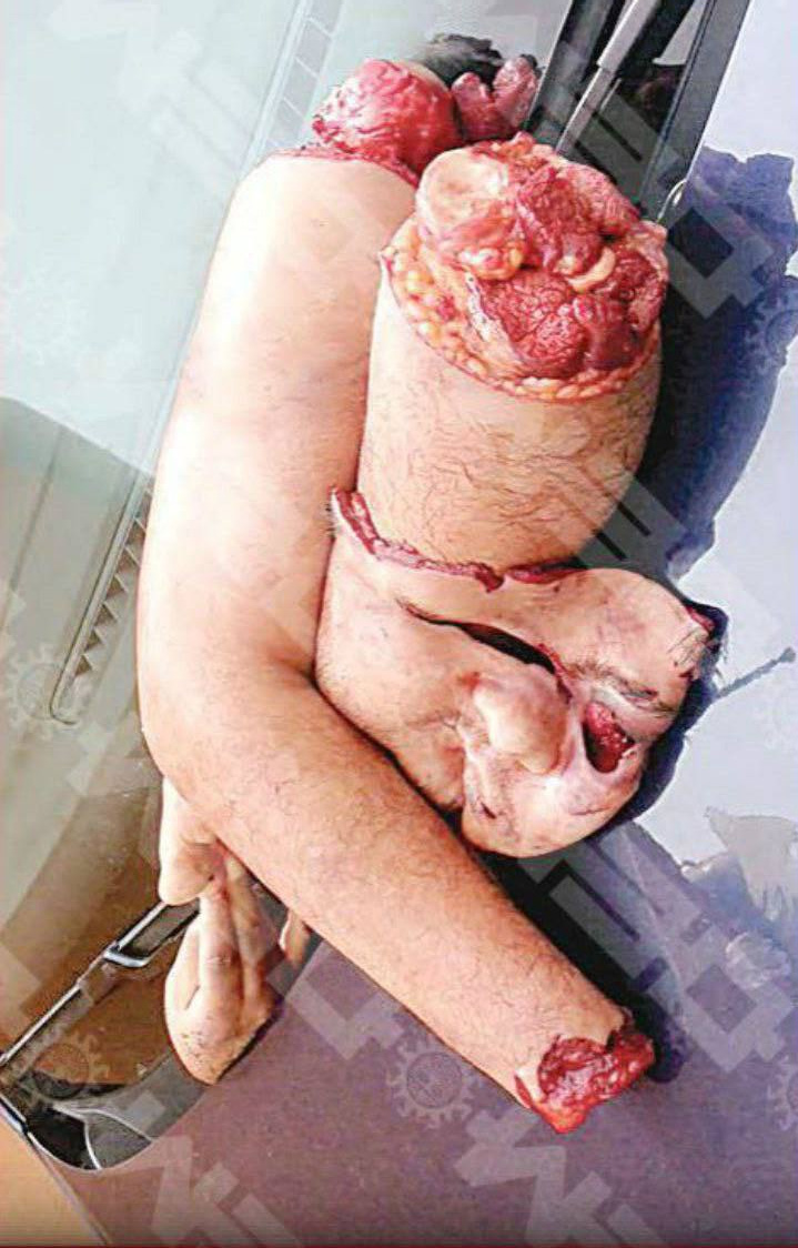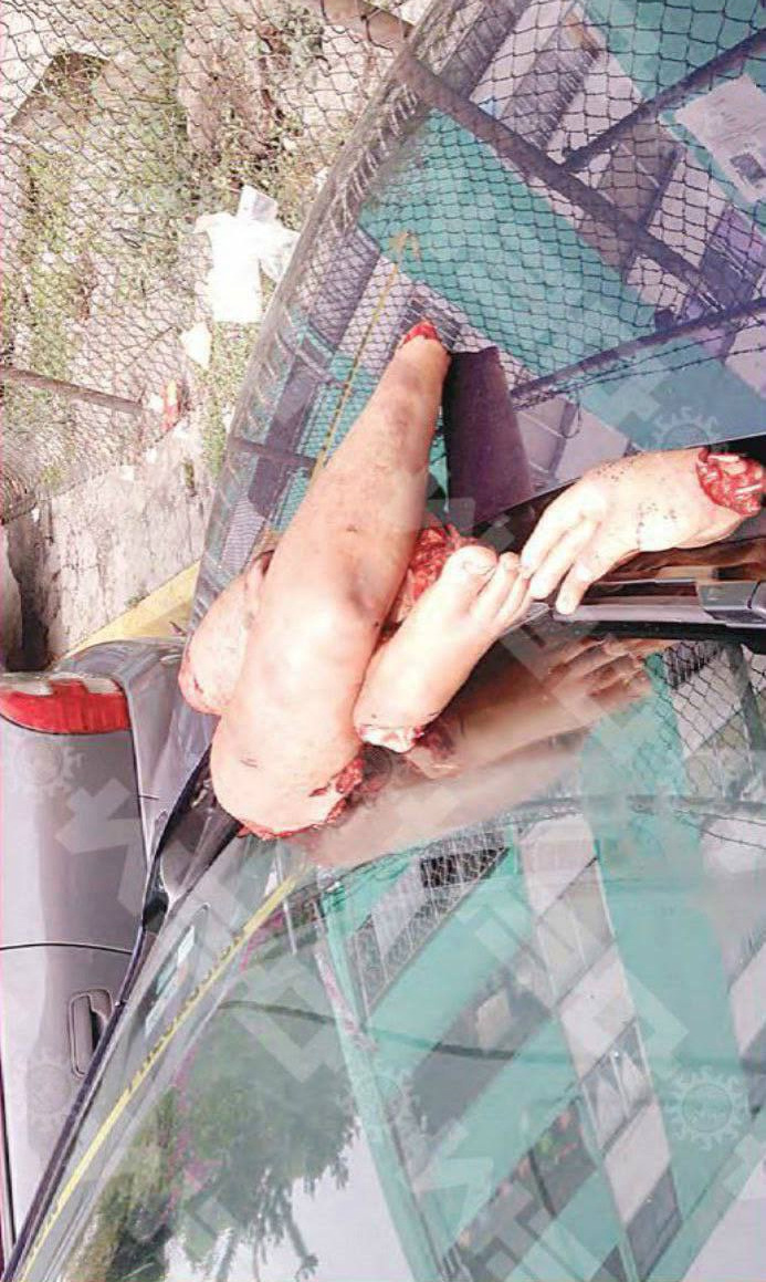メキシコのとある駐車場にて、バラバラにされた男性の死体を撮影した画像。