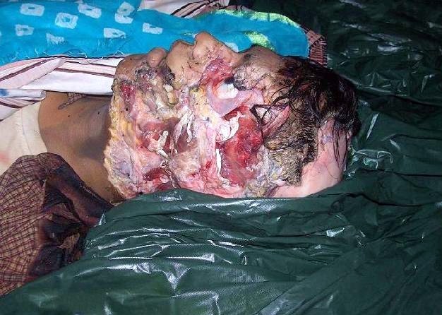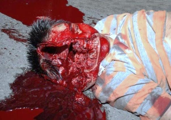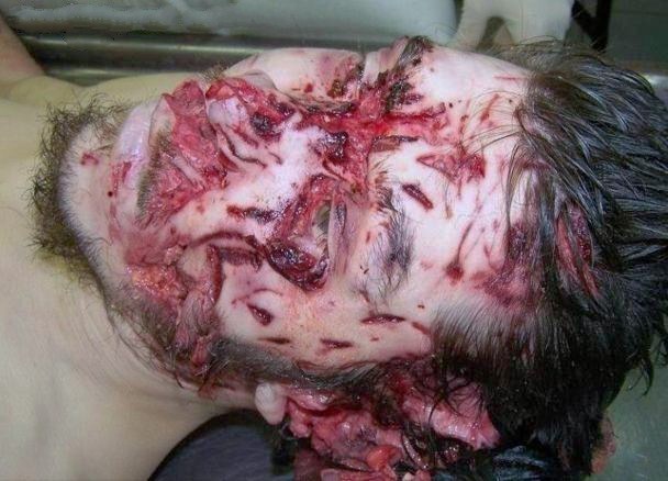 ヤベー状態で死亡した人間のグロ画像集Pt.15。主に顔がグチャグチャになって死亡した人間。