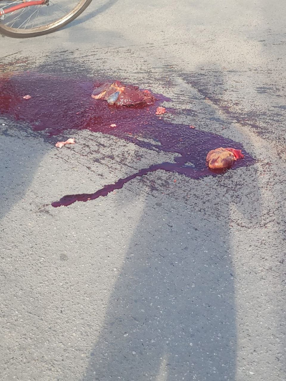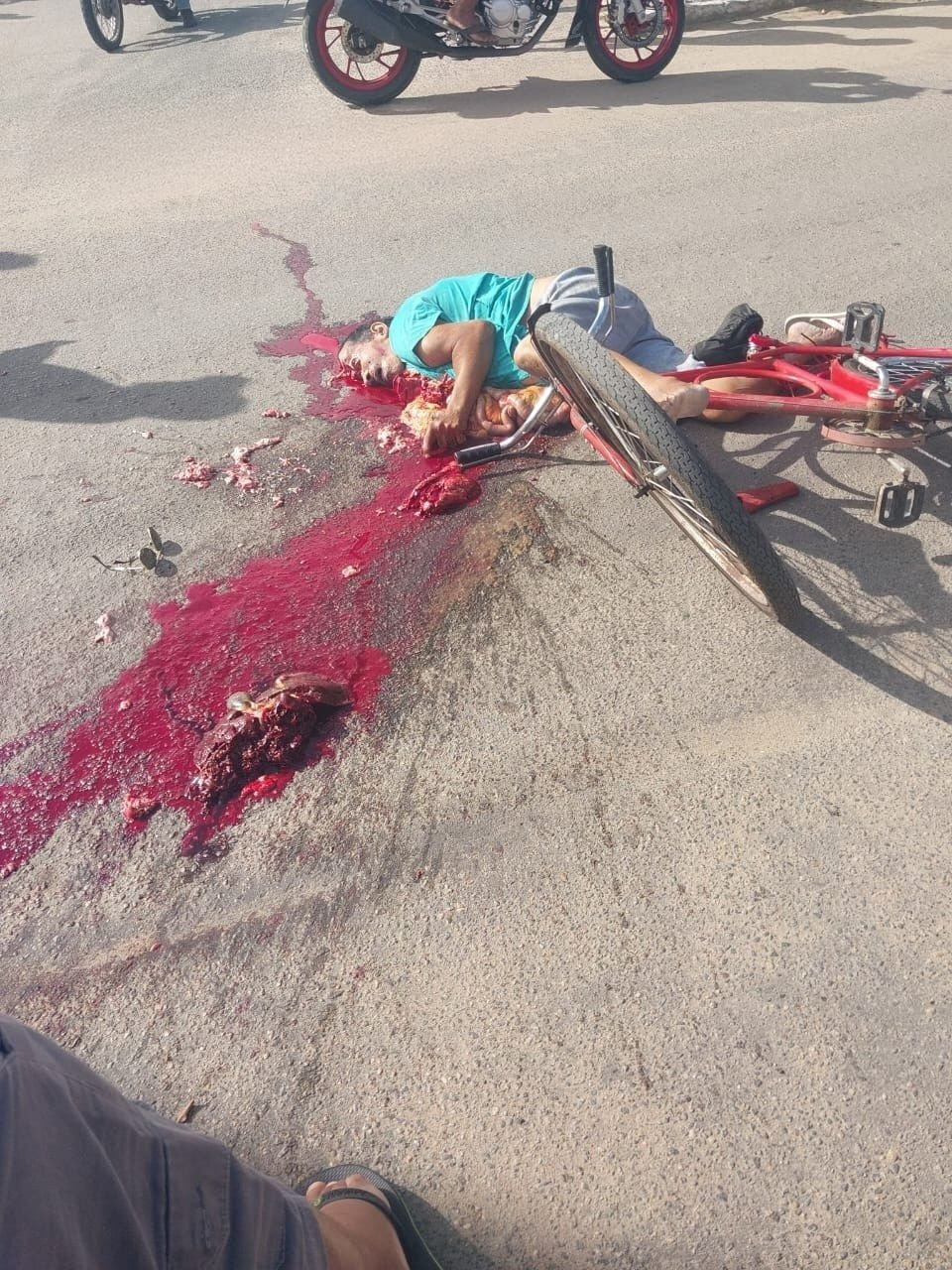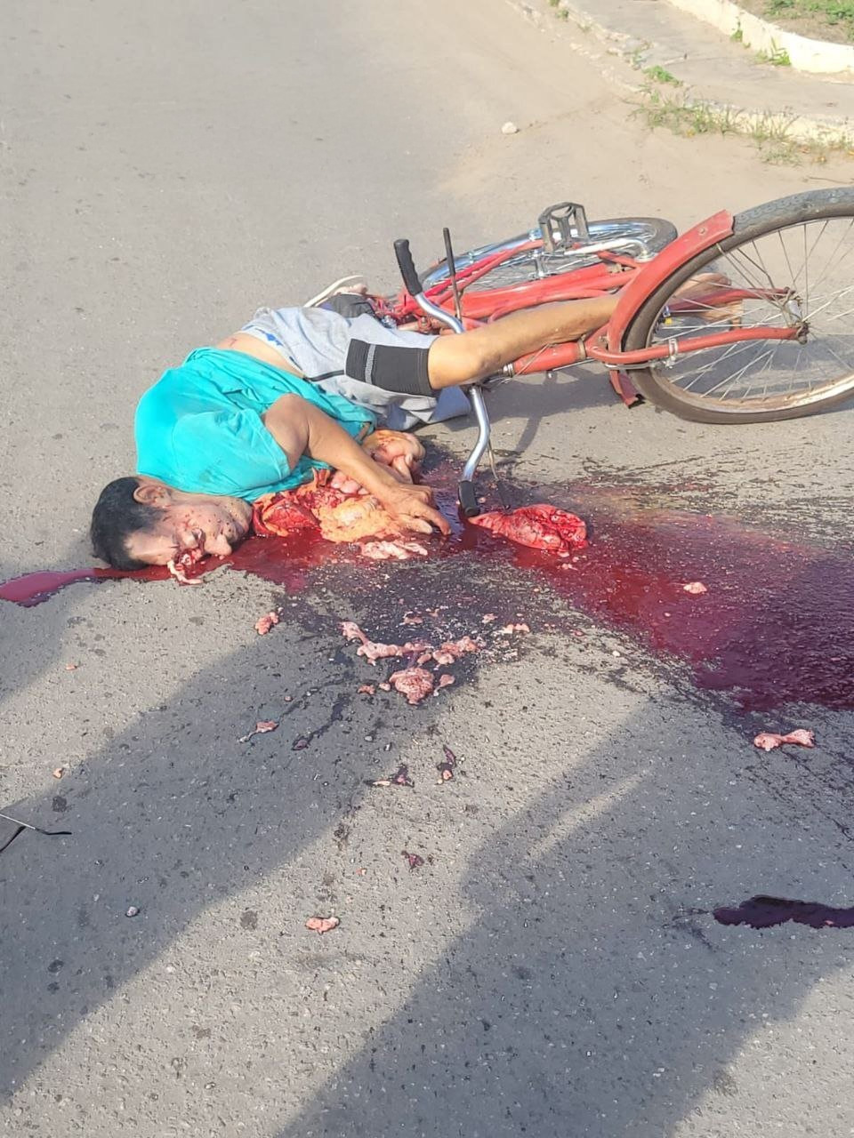 ブラジルにて、自転車に乗っていた男性がトラックに轢かれて死亡した画像。