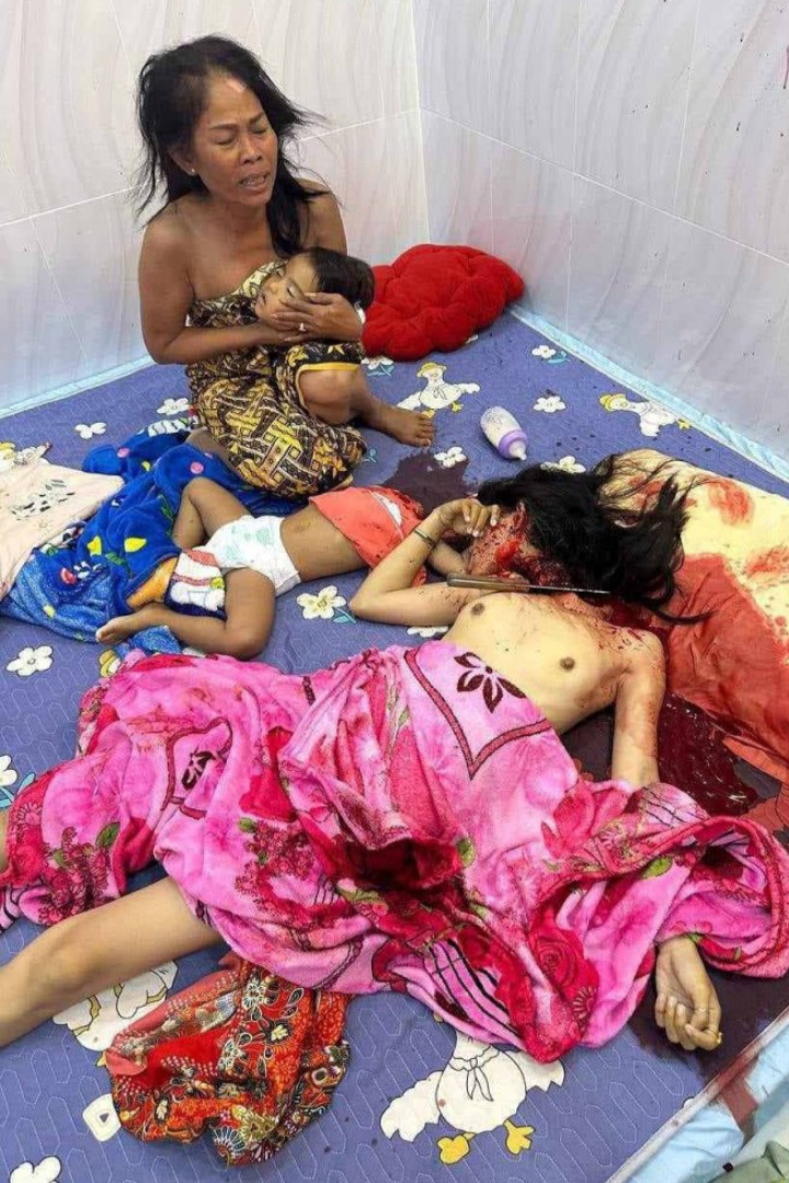 カンボジアにて、離婚を切り出された36歳の男が30歳の妻と2歳の娘の首を切断して殺してしまった画像。