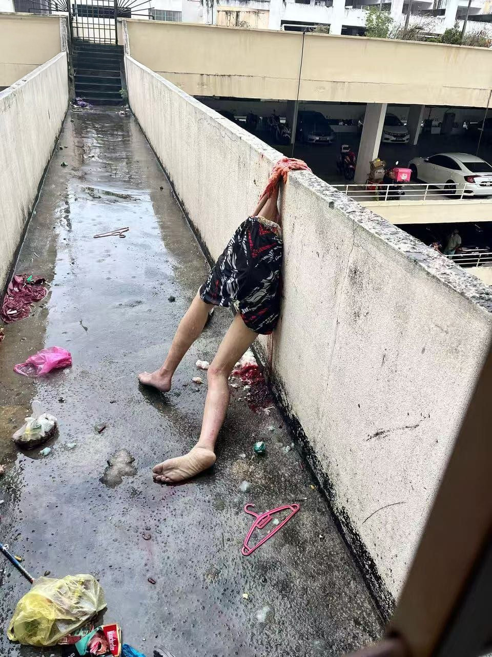 マレーシアにて、22階から転落して死亡した27歳男性の死体画像。