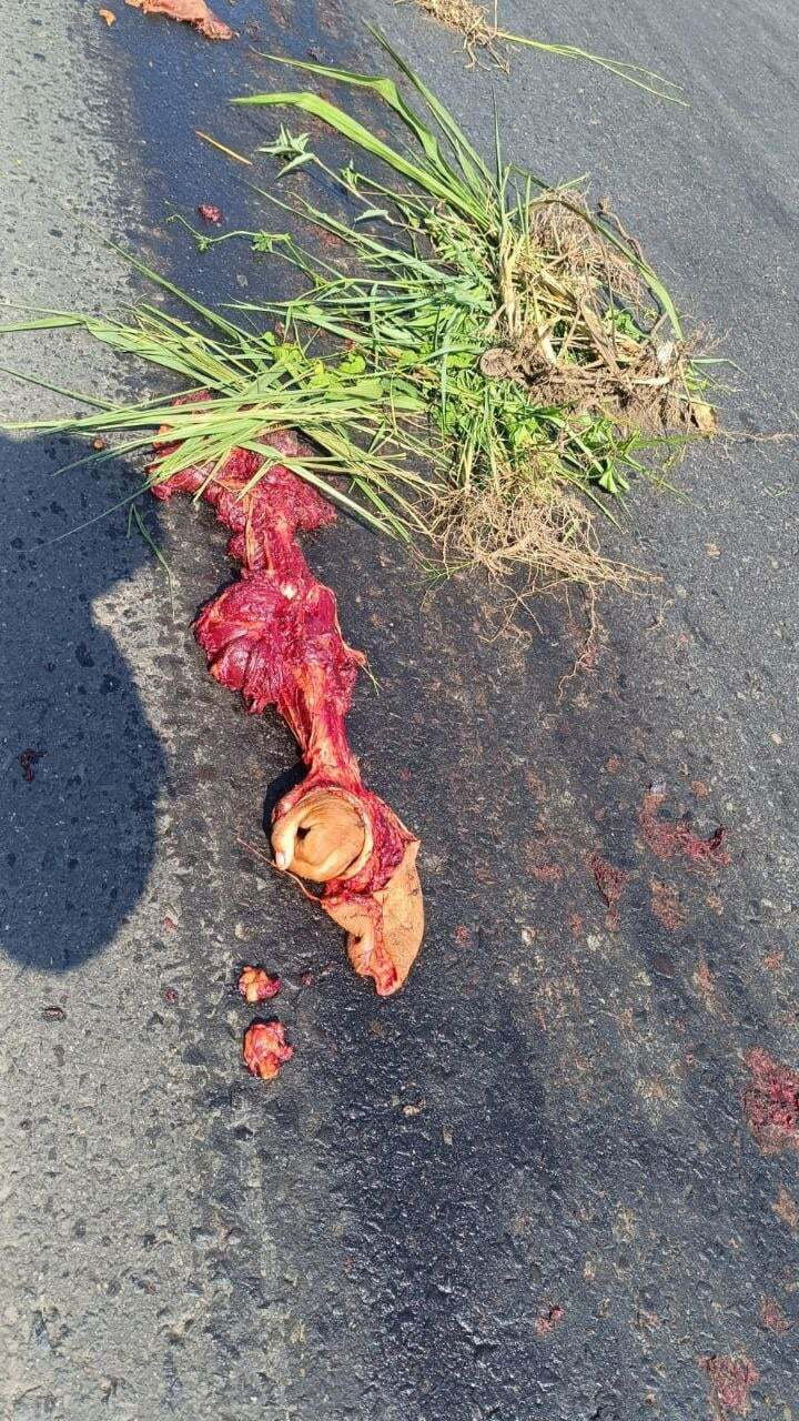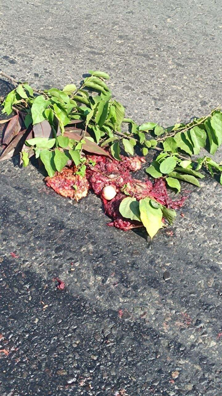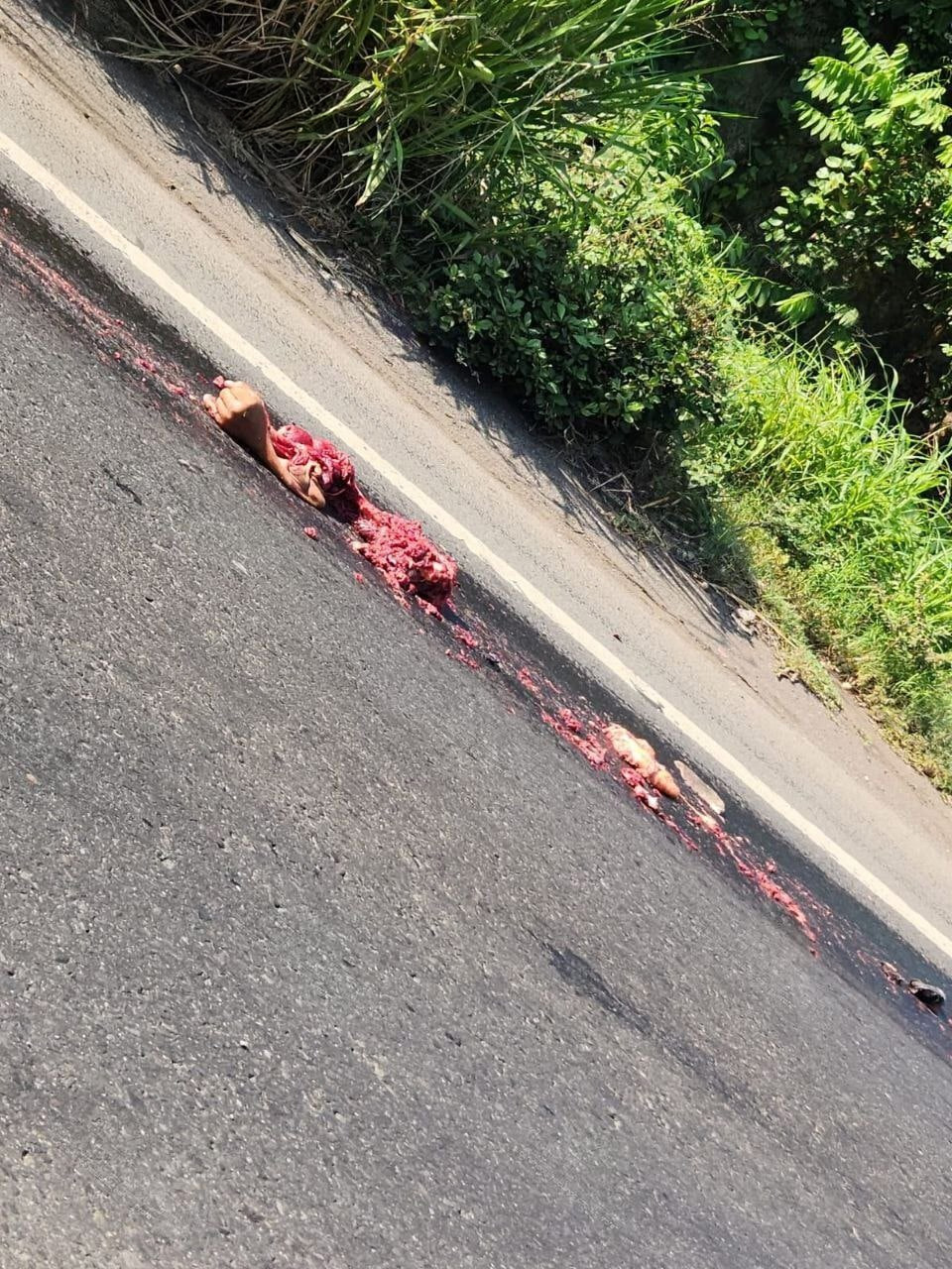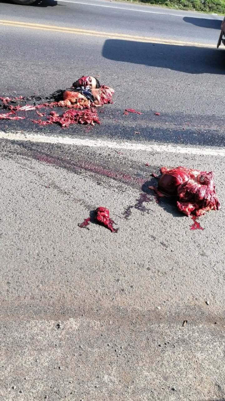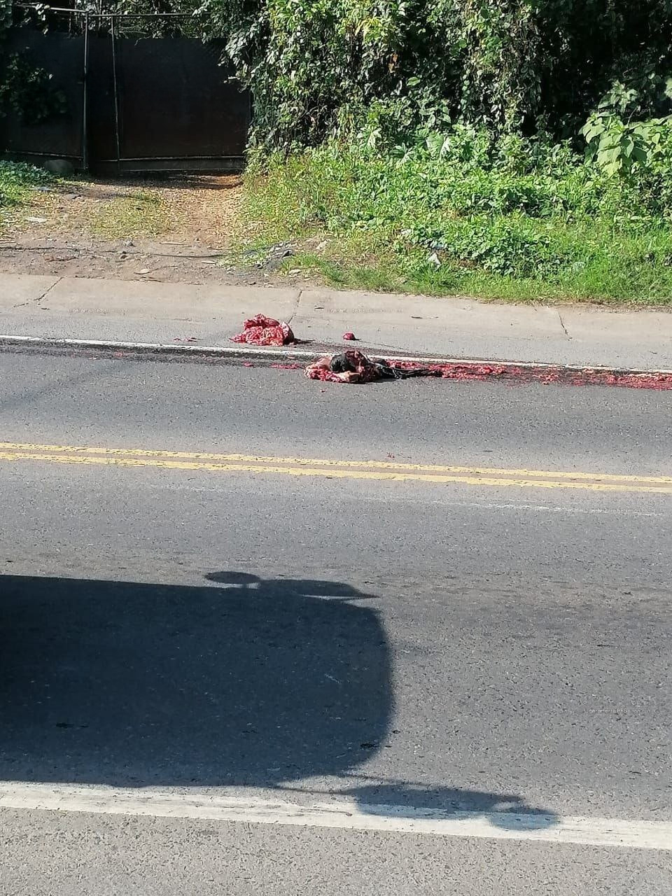 グアテマラにて、バイクに乗っていた男性が大型トレーラーに轢かれて死亡した画像。