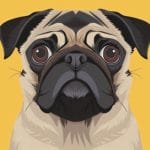身体の毛は白いけど、顔は黒いパグの映像。