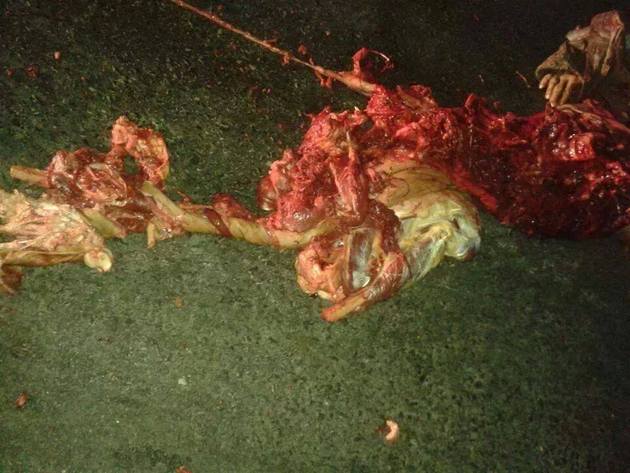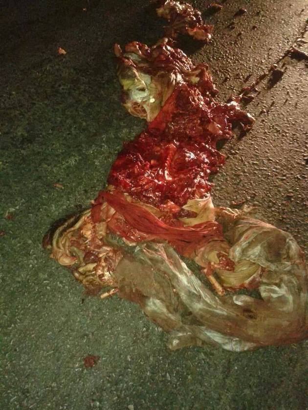 おそらくアジアのどこかで撮影された事故現場の画像。トラックか何かに轢かれたと思われる、もはや人の形をしていない死体のグロ画像。