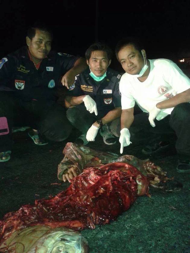 その死体を前にして笑顔で記念撮影する男性たち・・・。