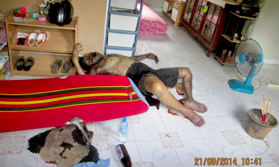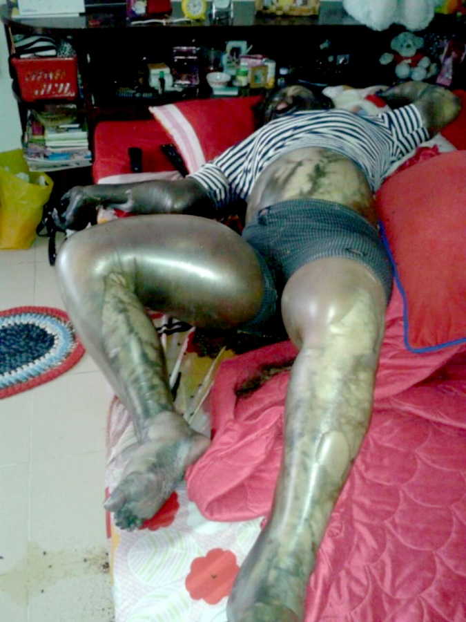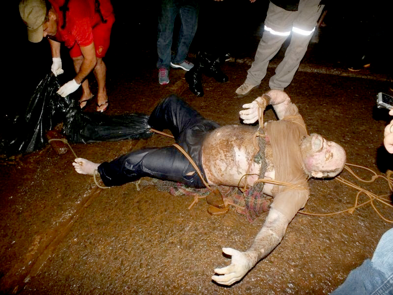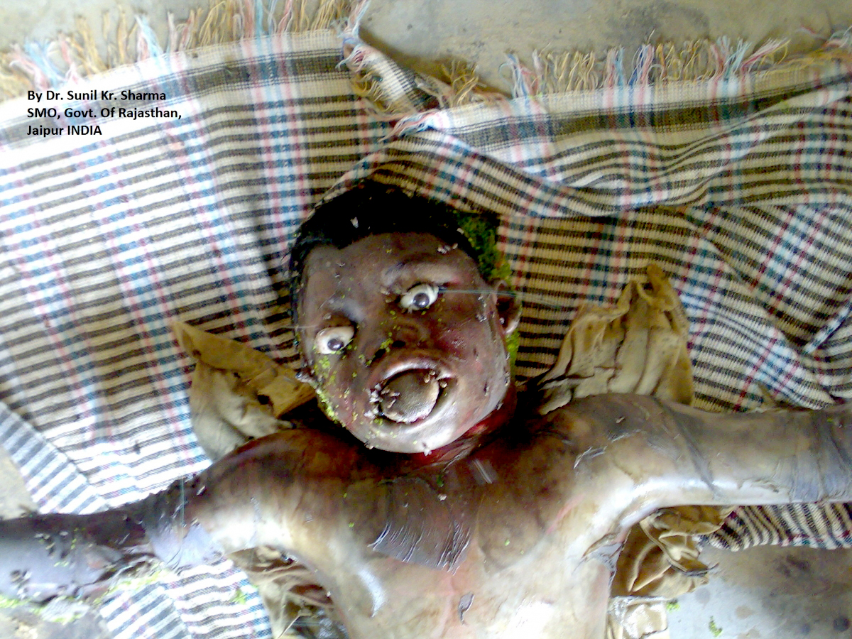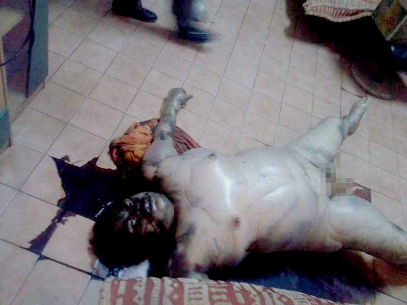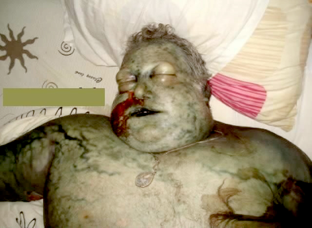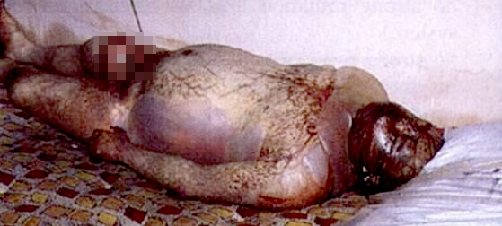 死後数日が経過して身体が黒ずみ、ガスでパンパンに腫れ上がった死体を撮影したグロ画像集。
