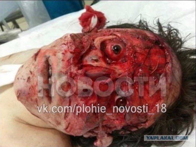 ロシアで撮影された画像。犬に襲われて顔の皮膚を食われてしまった女性。
