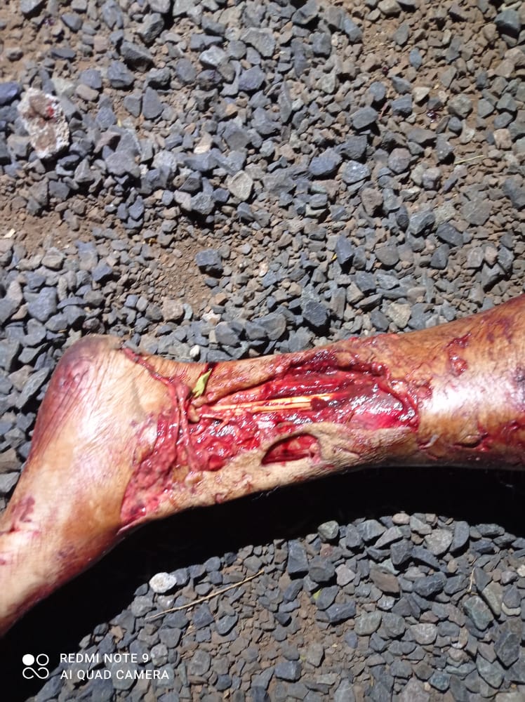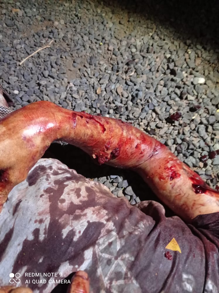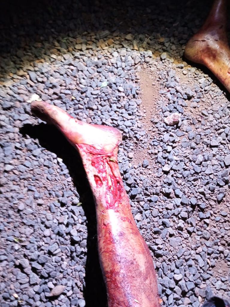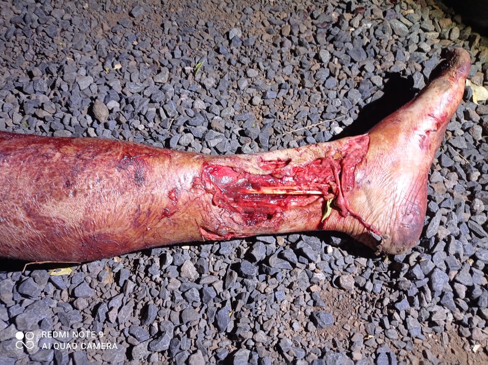 泥棒の男が侵入した家で飼われていたピットブルに身体をズタズタにされた画像。