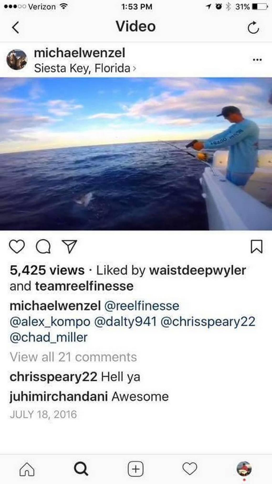 4人の男性たちが投稿した動画。サメにロープを付けてボートで引きずり回したり、エラからビールを注いだりなどの虐待を行い問題に。