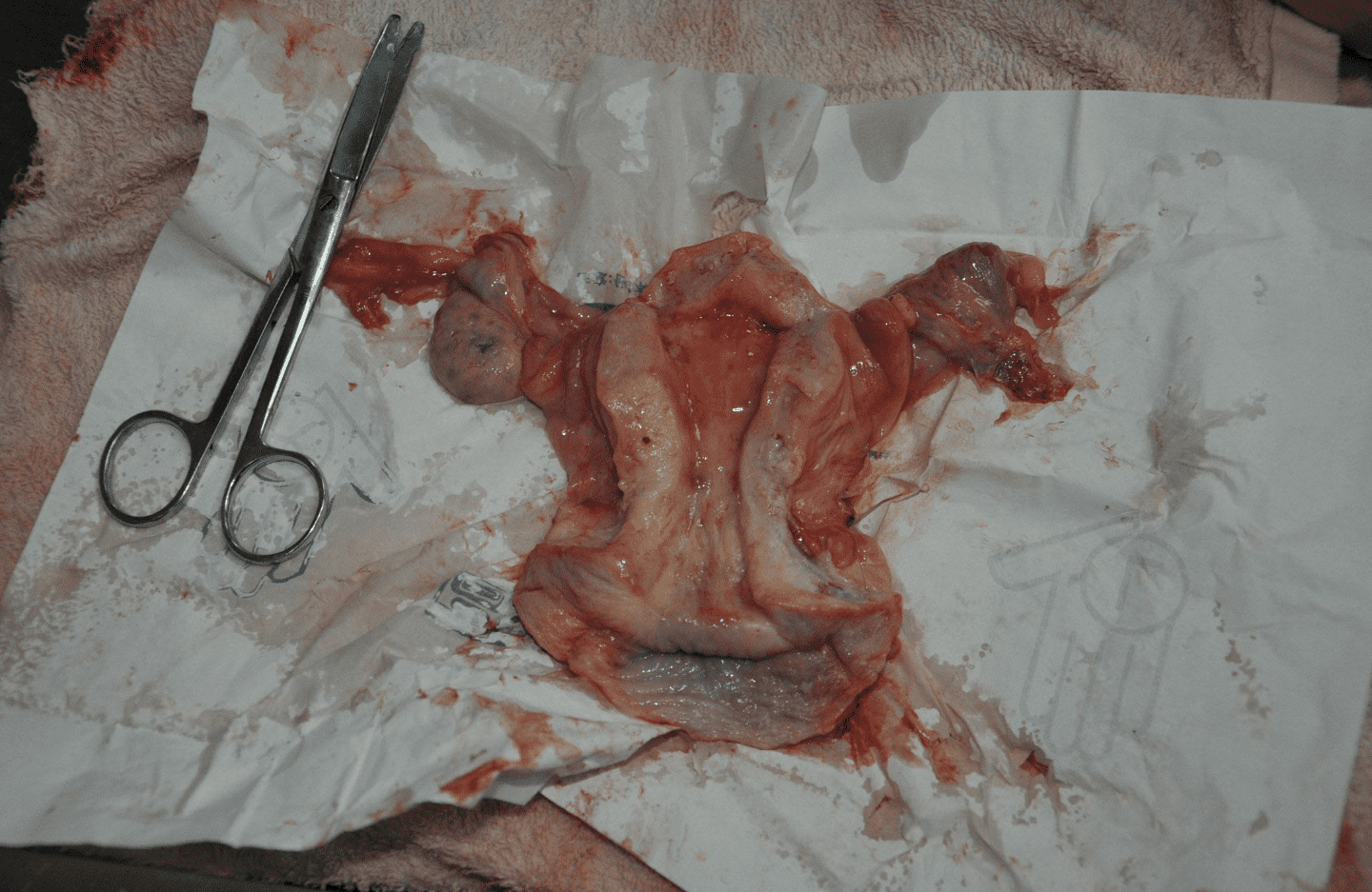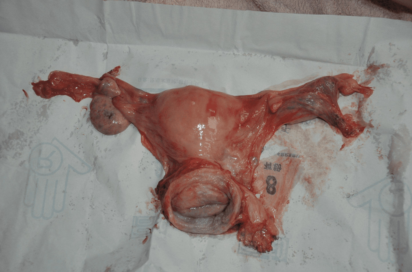 女性の死体から子宮をまるごと摘出した画像。
