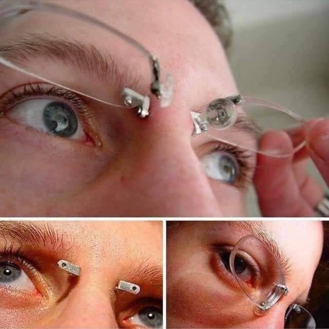フレームレスメガネをかけられるためのピアスを撮影した画像。