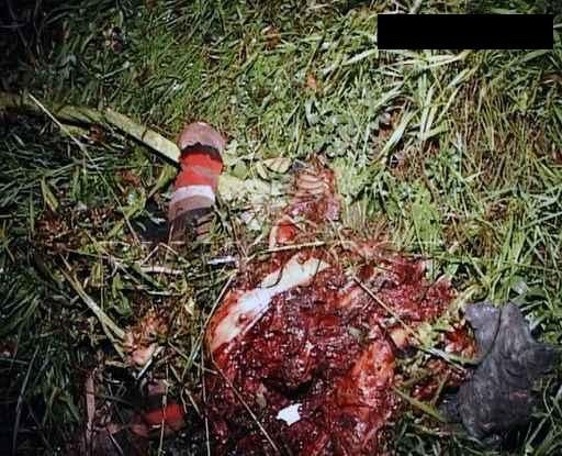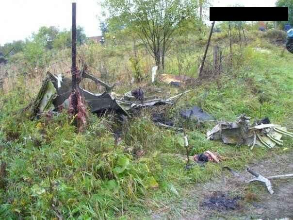 自家用飛行機が墜落して、乗っていた人間が死亡した現場の画像。