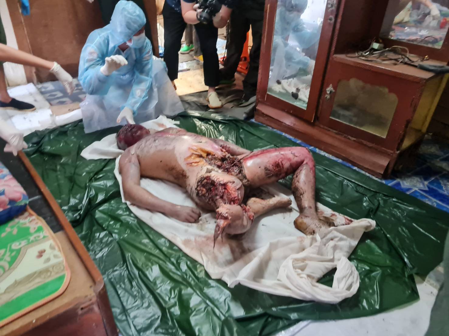 タイにて、自宅で死亡した男性がオオトカゲに食われていた映像。