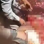 丸々太ったカエルを締める方法は包丁で頭を縦に真っ二つ。一瞬で息の根を仕留めたあとは、内臓を掻き出し、一口大に切っていく。