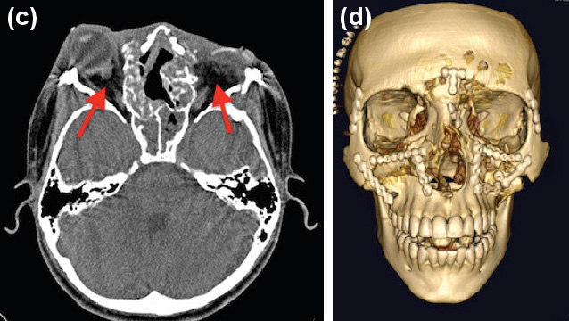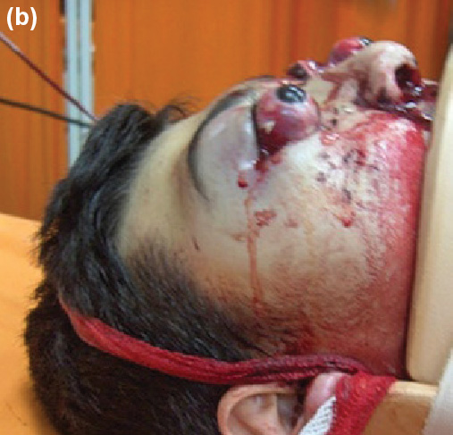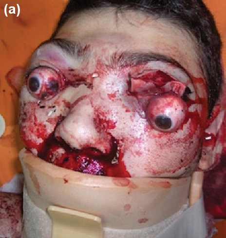 事故で両目が飛び出てしまった男性の手術前と後の画像。