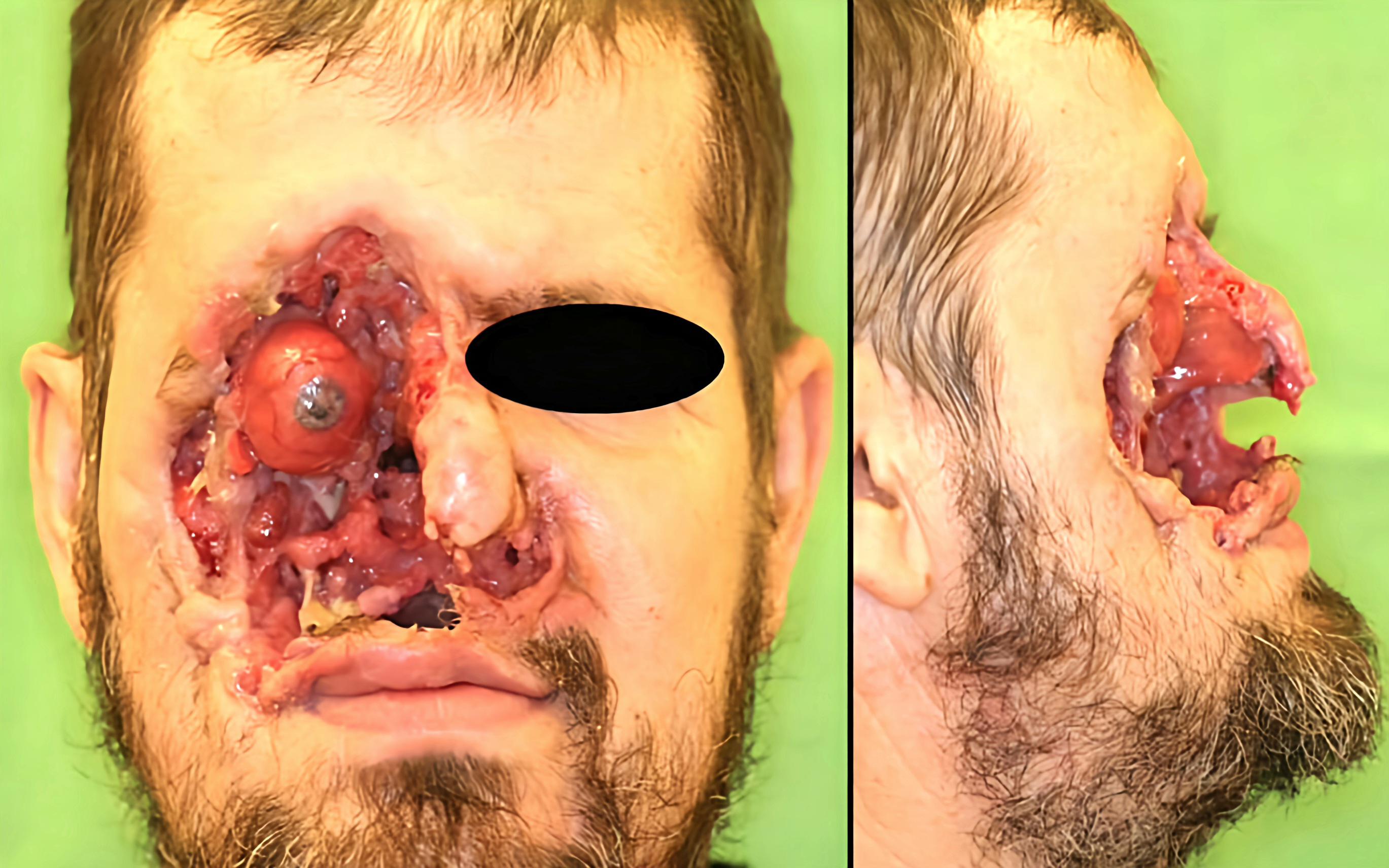44歳の男性の顔に出来た腫瘍を切除したあとに撮影した画像。