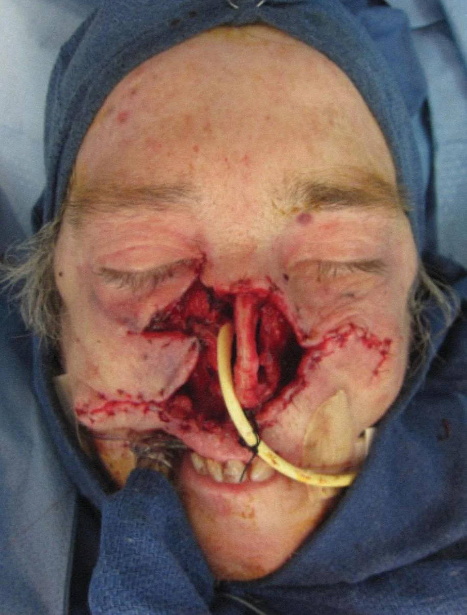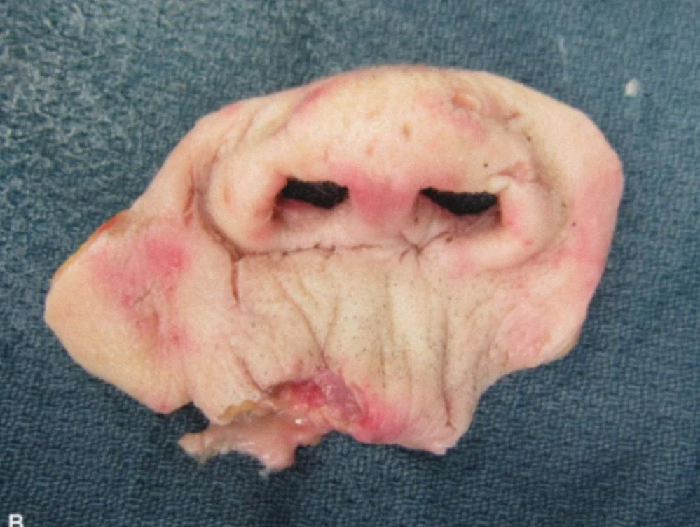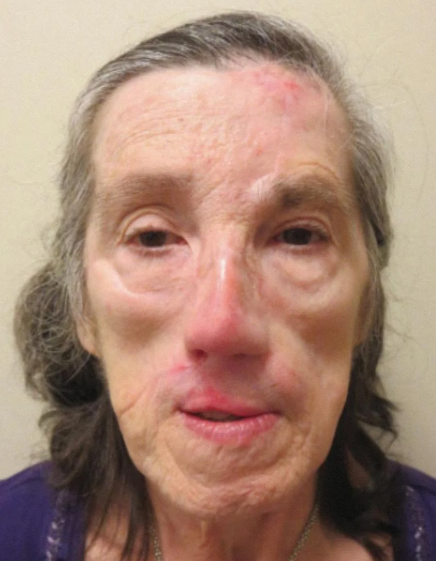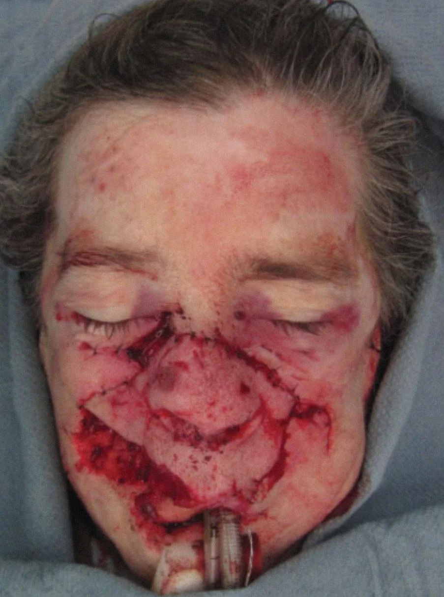 ピットブルに鼻を噛みちぎられてしまった女性のビフォーアフター画像。