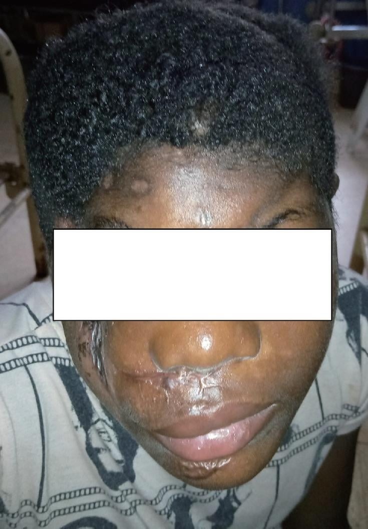 交通事故で顔がぐちゃぐちゃになってしまった14歳の少年の画像。