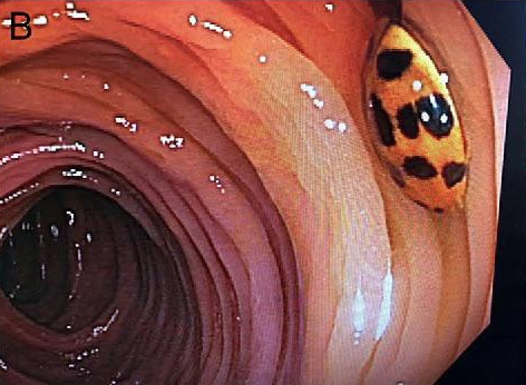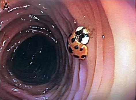 内視鏡検査の前日にポリエチレングリコールを飲んでおり、この影響でテントウムシは胃や腸の消化酵素から逃れたと思われるものの、どうやって入ったのかは不明。