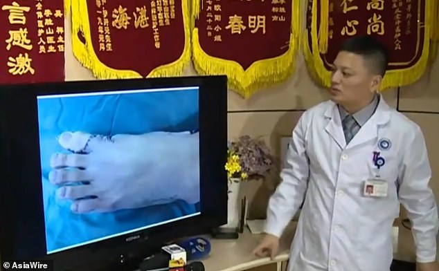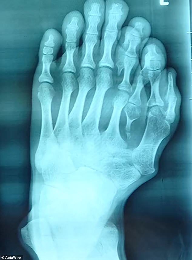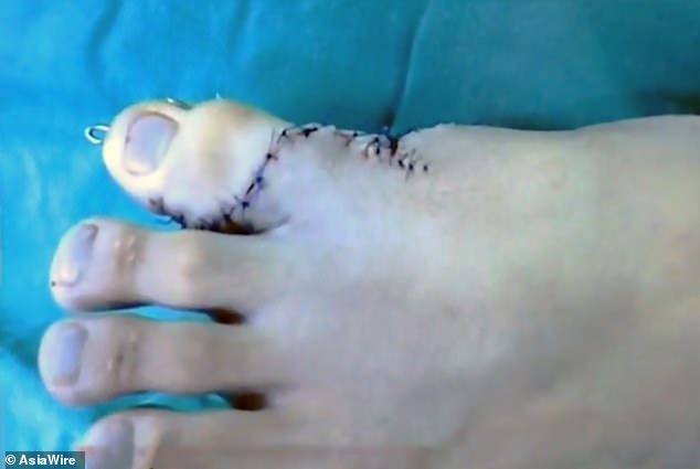 生まれつき左足の指が9本あった21歳の男性が正常な足にするための手術を受けた画像。
