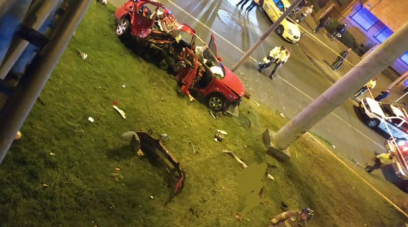 コロンビアの首都ボゴタで撮影された事故映像。運転手を含めて4人が乗っていた車がスピードを出しすぎてクラッシュ。