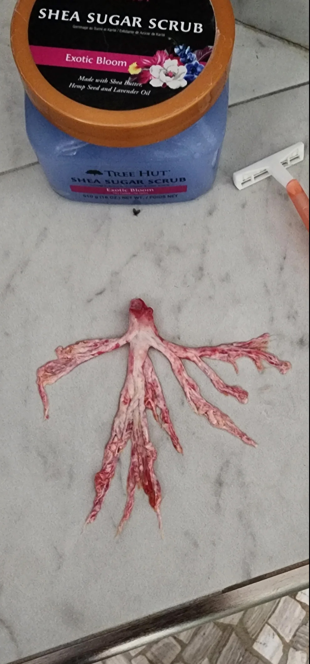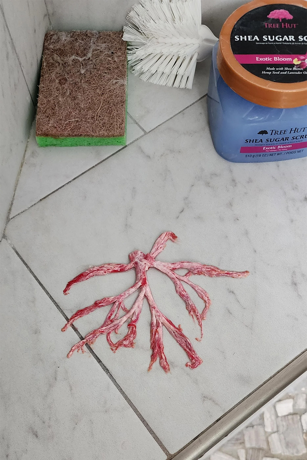 喘息を伴う肺炎を患っていた方が、咳き込んだ拍子に口から出てきたモノを撮影した画像。