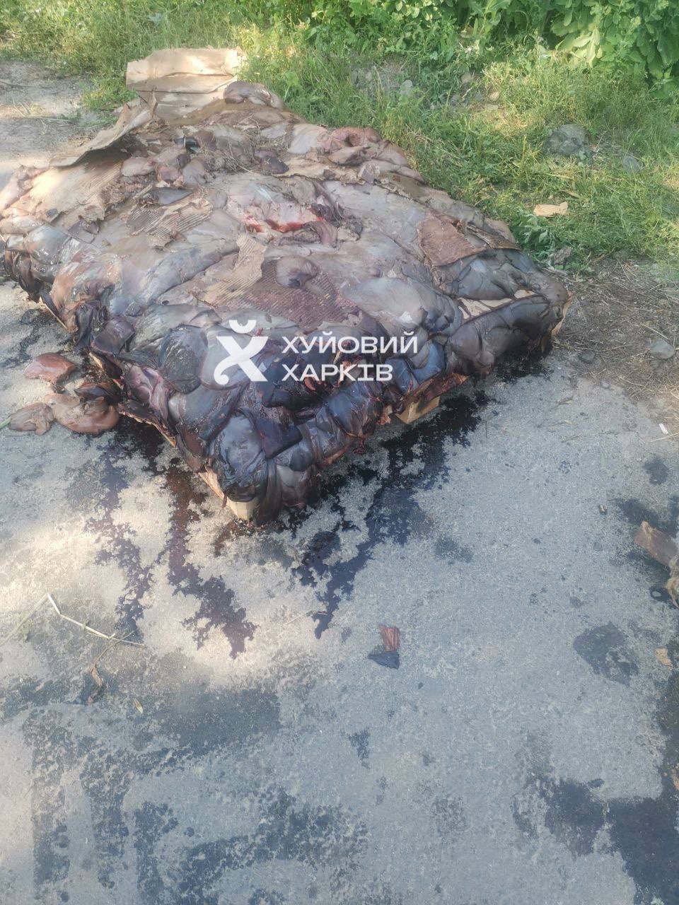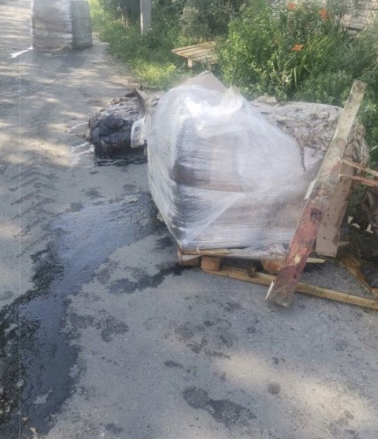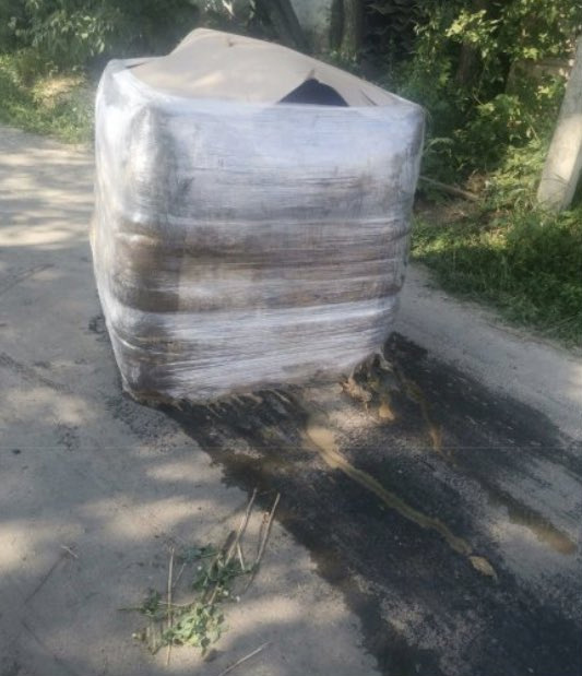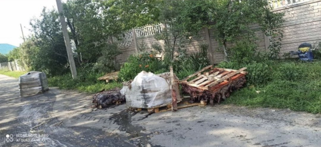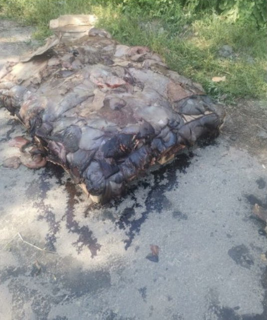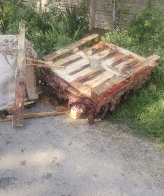 ウクライナにて、まるで大きな四角い箱に詰められて圧縮されたようなロシア兵士たちの死体を撮影した画像。