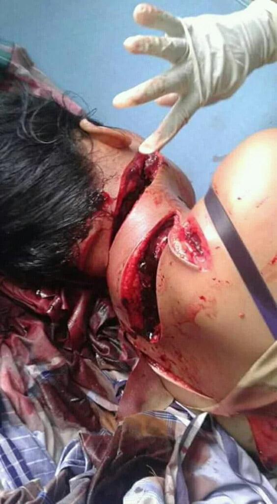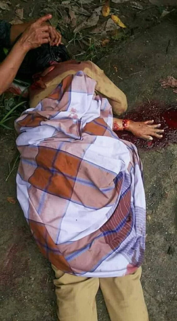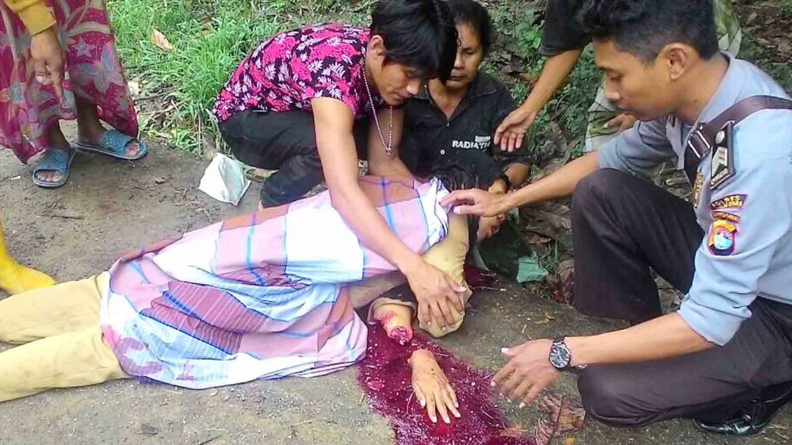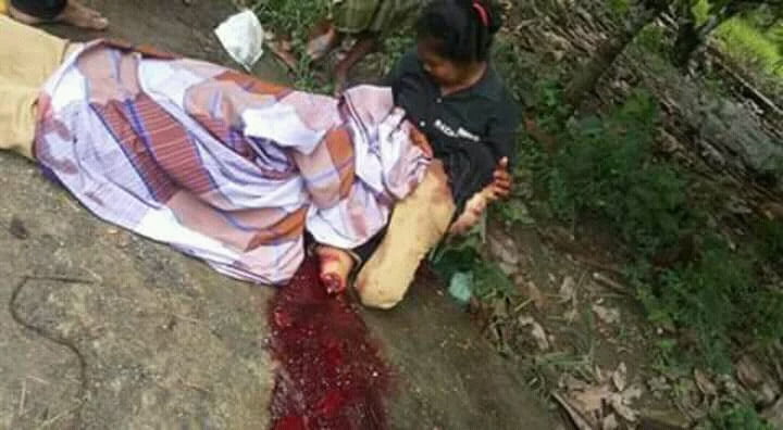 インドネシアで撮影された画像。夫である男にマチェーテで殺害された妻のグロ画像。