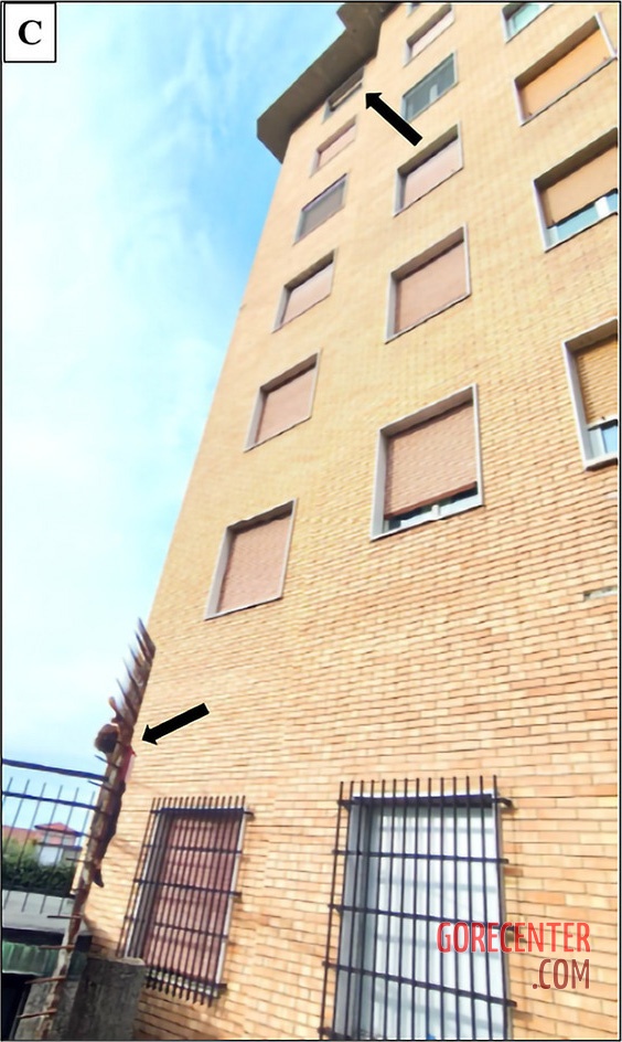 イタリアにて、19歳の女性が自室の窓から飛び降りて自殺した画像。