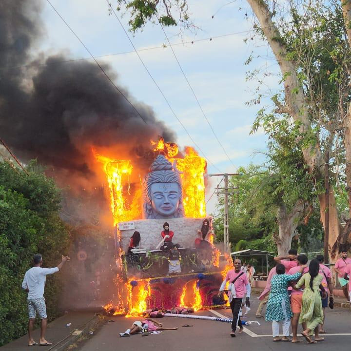 インド洋に位置する島国モーリシャス共和国にて、シヴァ神を乗せた山車が電線に引っかかり火災が発生。