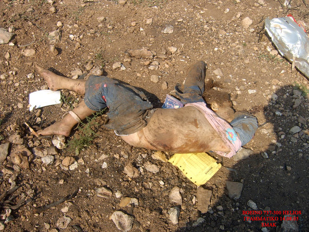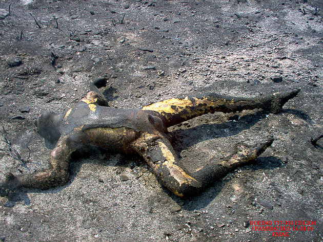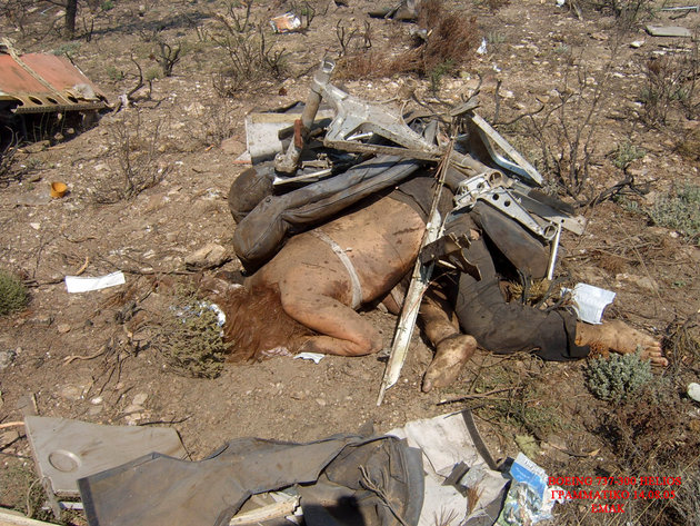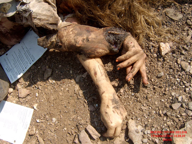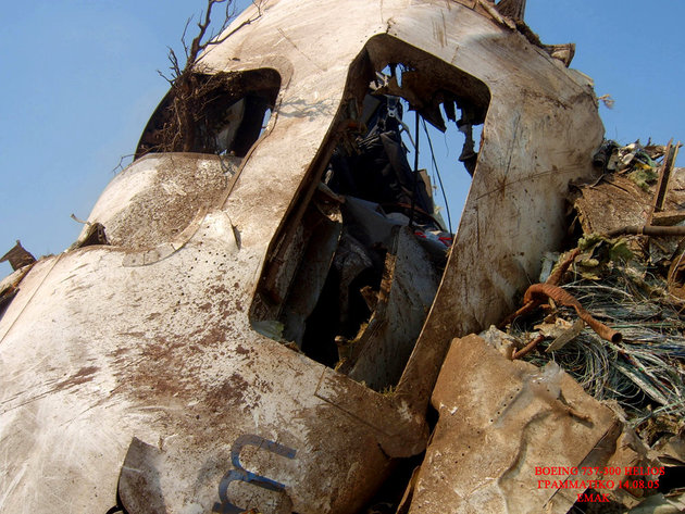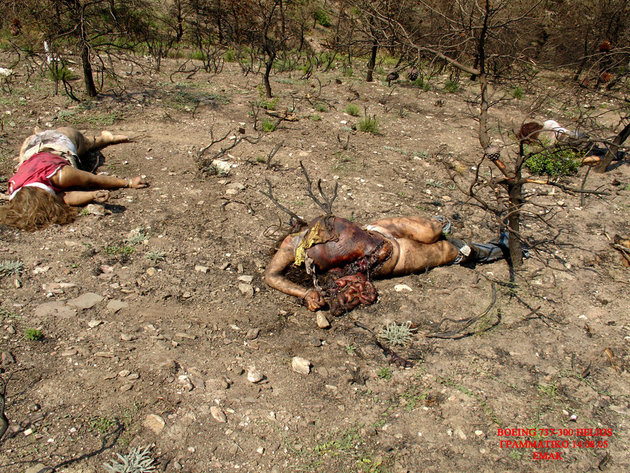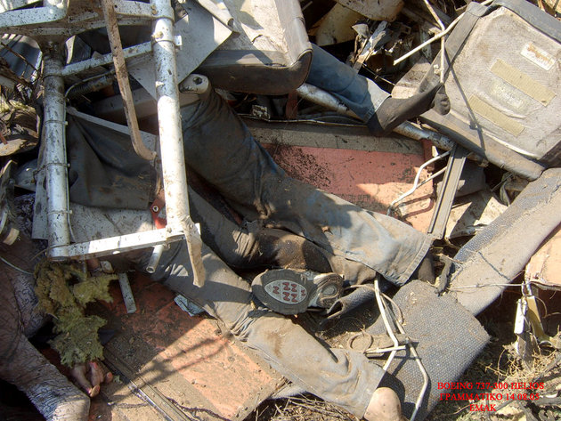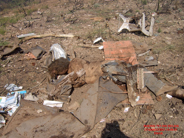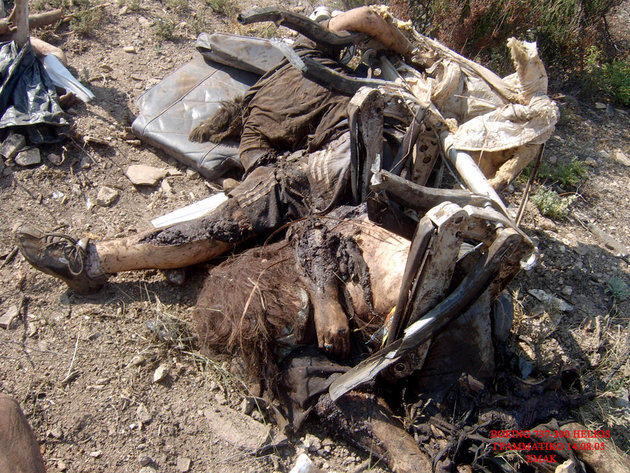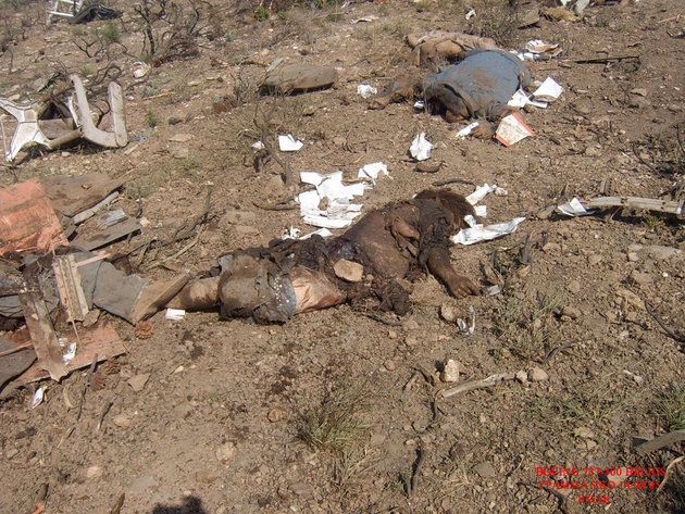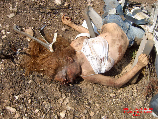 飛行機事故現場を撮影したグロ画像。崩壊した飛行機の周りには放り出されて死亡した人間たちの死体が転がっている。