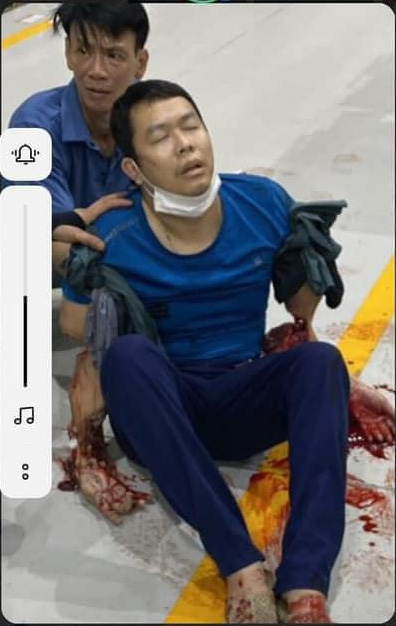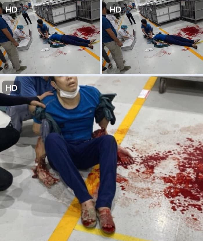 ベトナムにて、工場の男性作業員が油圧プレス機に両腕を巻き込まれてしまった映像。