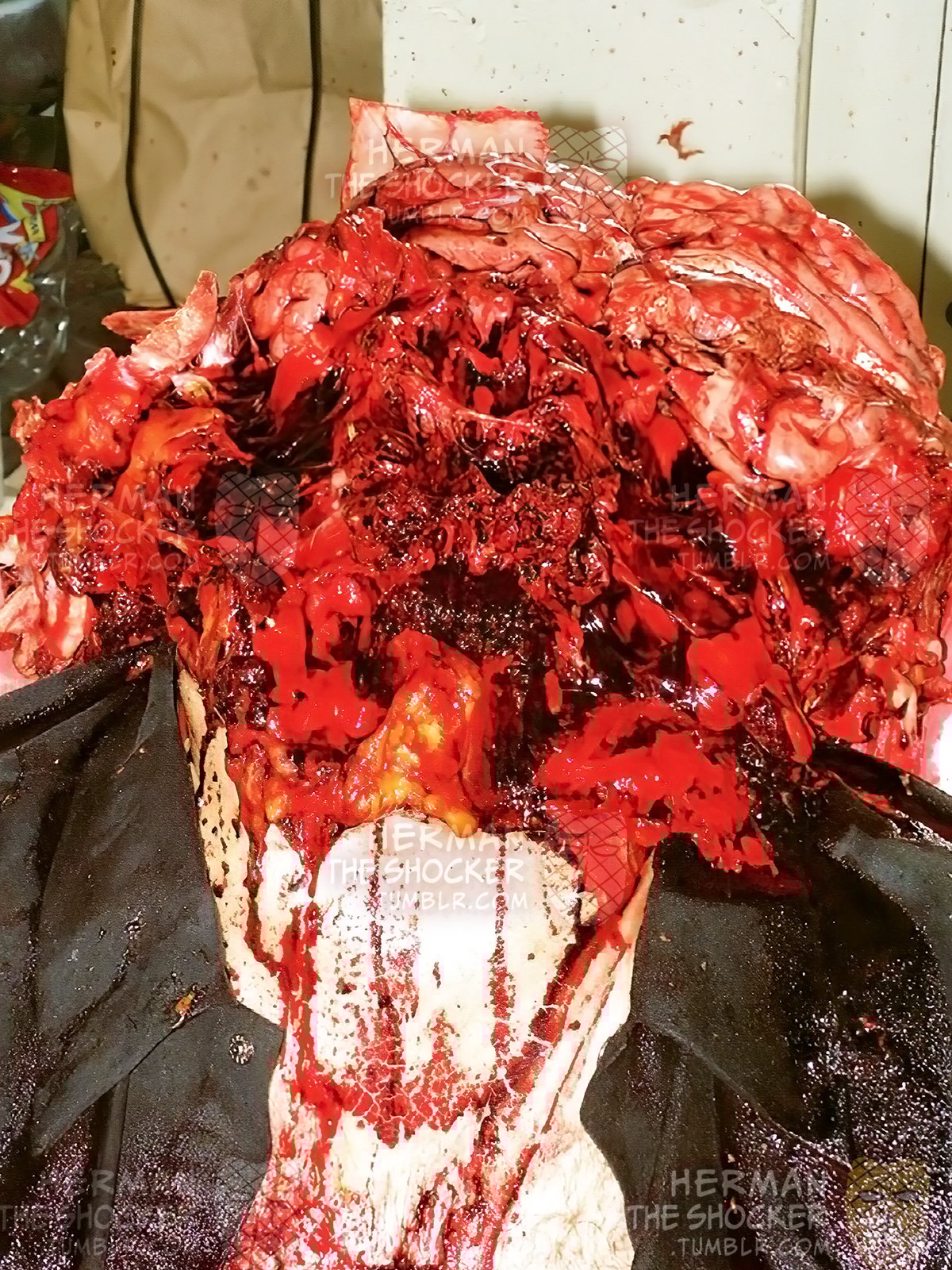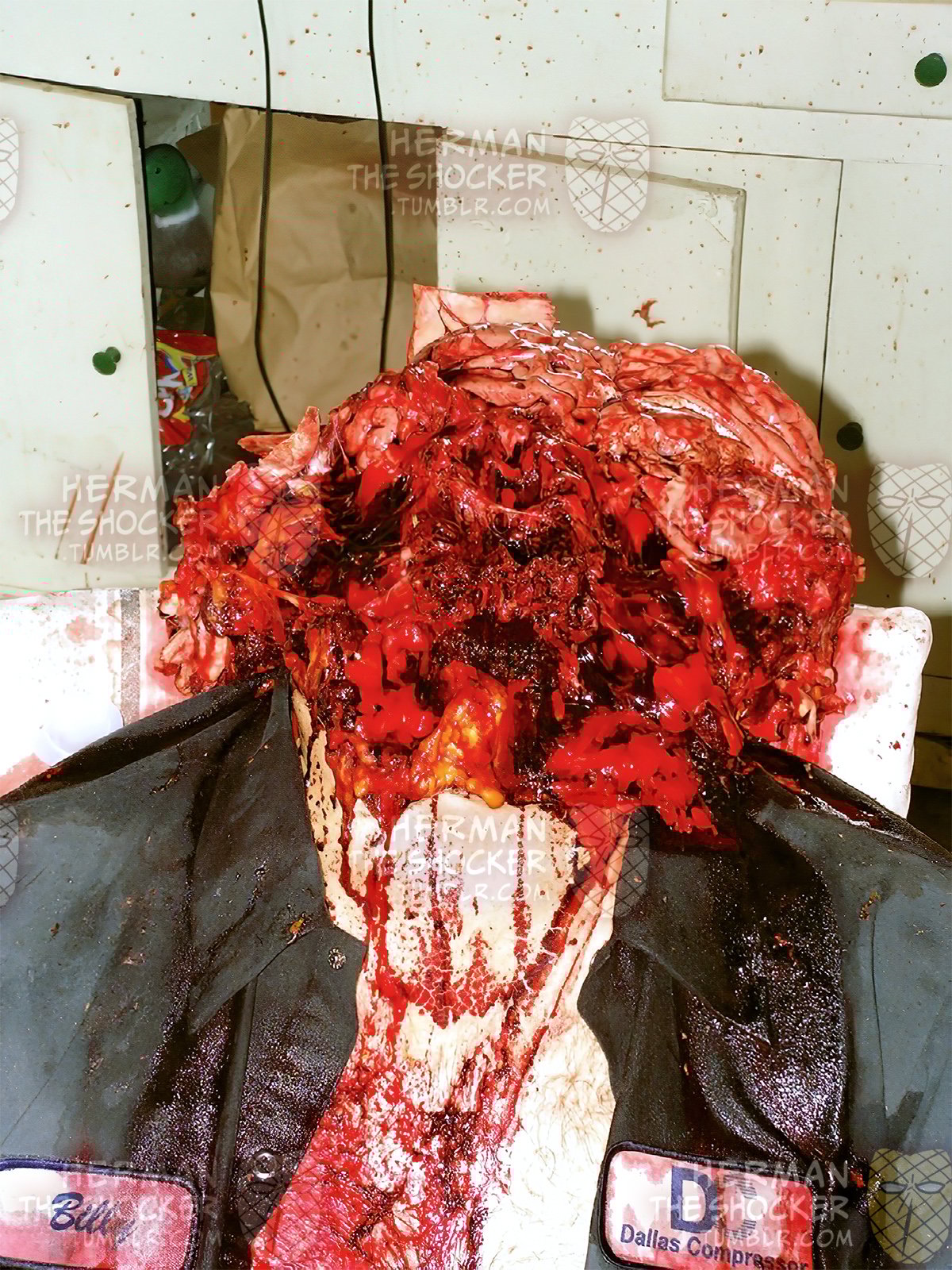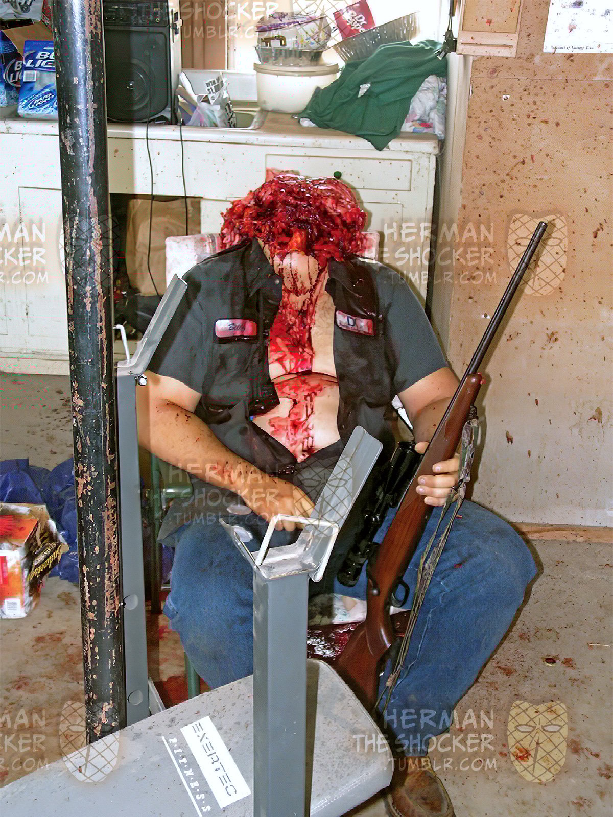 30口径のライフルで自分の頭を吹き飛ばして自殺した男の画像。