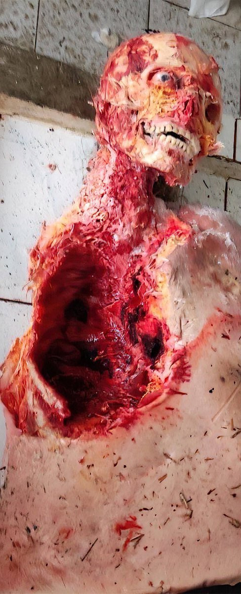 ウクライナの戦争で死亡し、その後、動物に食われた兵士の死体画像。