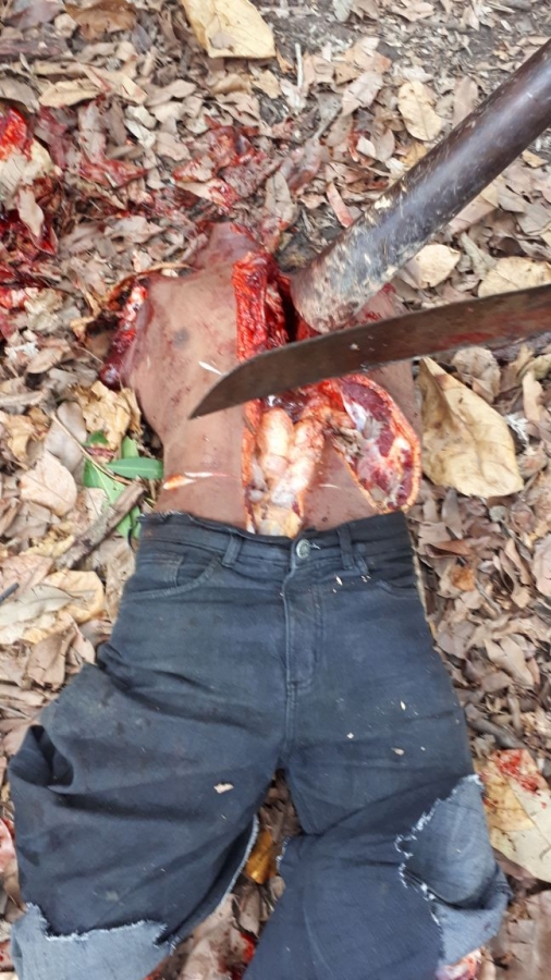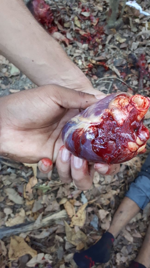 ギャングが撮影したグロ画像。ライバルギャングのメンバーである男性の目をくり抜き、心臓をえぐり出し、身体をバラバラにして殺害した画像。