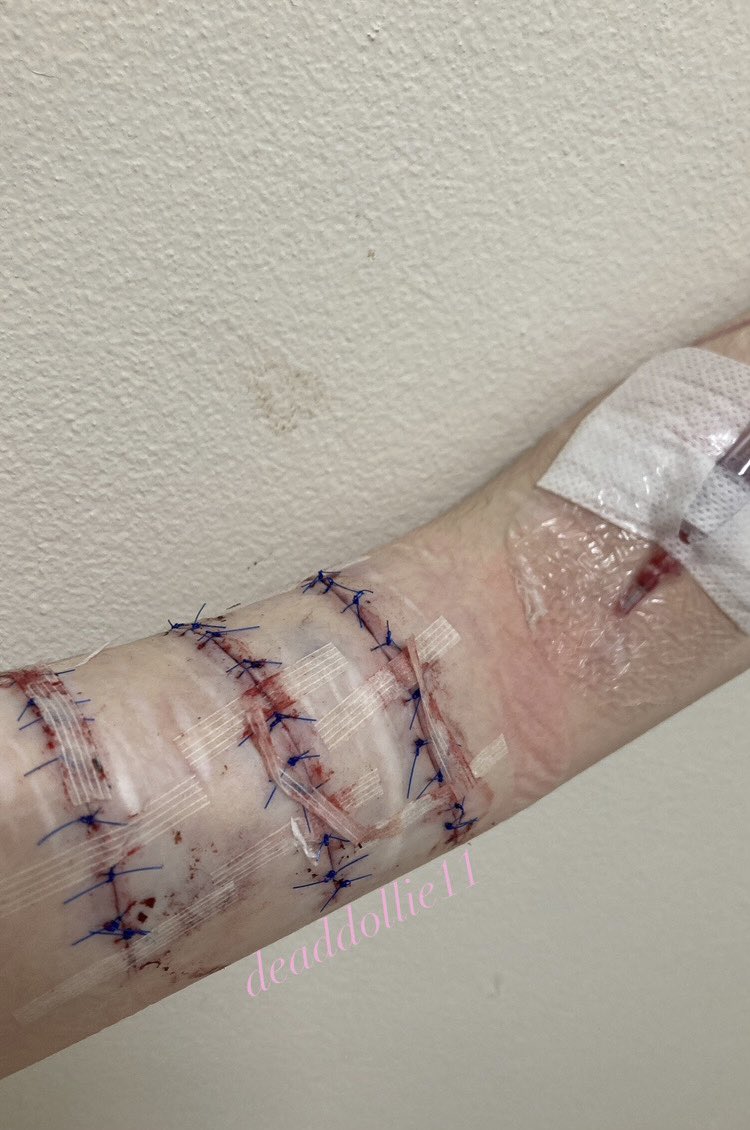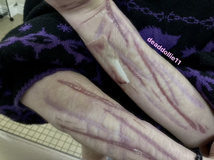 首や足、腕をズタズタにしてしまった女性の画像と動画。