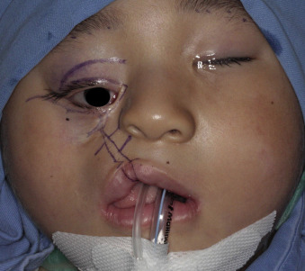 10万人に1~4人の確率で発症するとされている「斜顔裂(しゃがんれつ)」の女の子の手術ビフォーアフター画像。