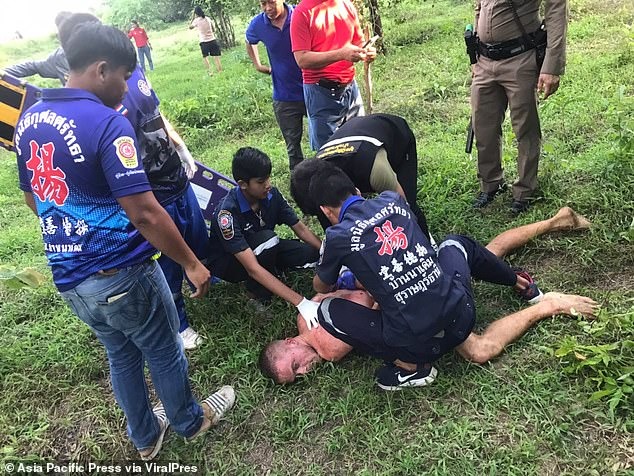 タイにて、旅行客のロシア人の男が牛をレイプしようとして牛に返り討ちにあった映像。