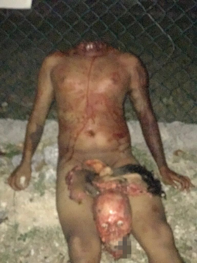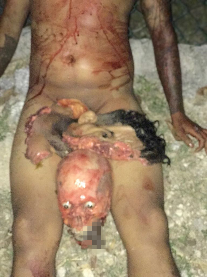 頭は切断され、顔の皮膚は剥がされ、性器は切り取られて口に詰め込まれていた。