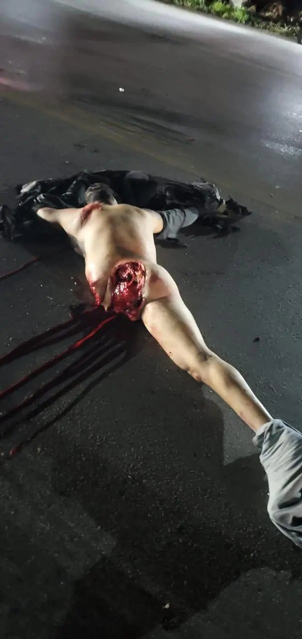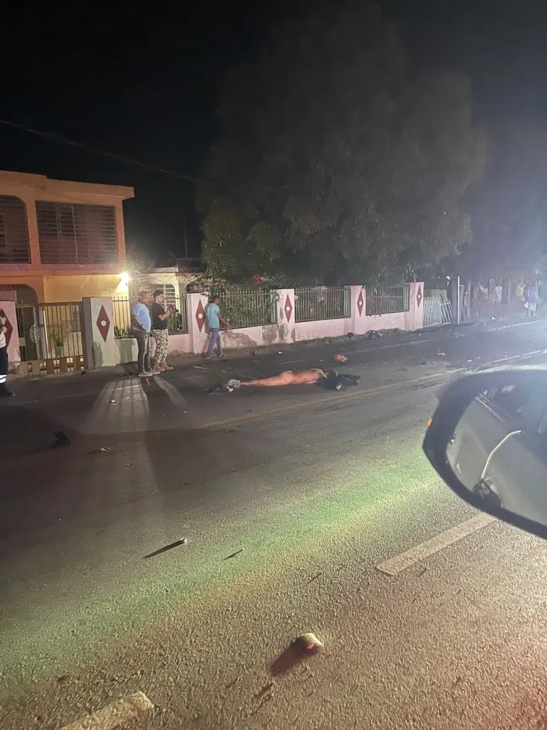 ドミニカ共和国にて、バイクに乗っていた男女がトラックと衝突して死亡した画像。