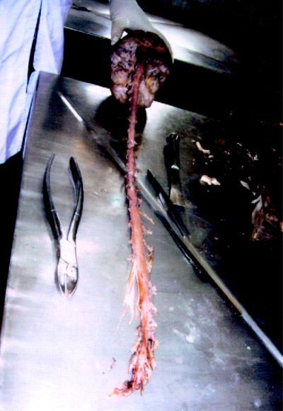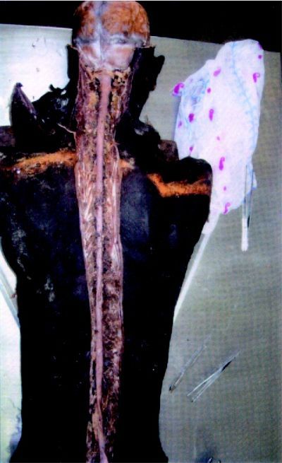 死亡した男性から脳幹と脊髄が繋がったままの状態で摘出したグロ画像。